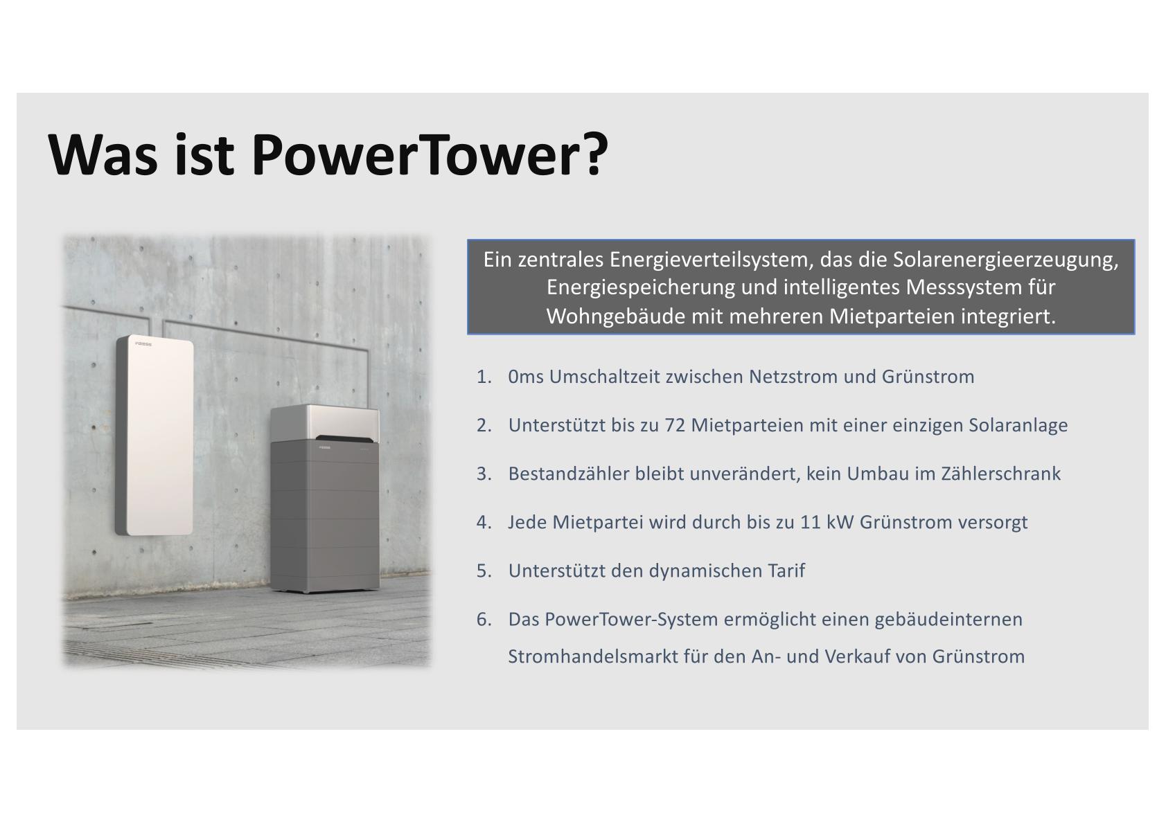 Wir bieten die professionelle Installation und Einrichtung des PowerTowers für Wohn- und Gewerbegebäude, angepasst an Ihre spezifischen Bedürfnisse.
